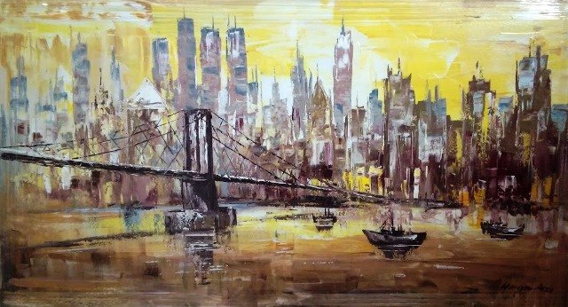 AMERİKA NEW YORK ŞEHİR VE BROOKLYN KÖPRÜSÜ TABLOSU ŞEHİR MANZARALARI TABLO 09