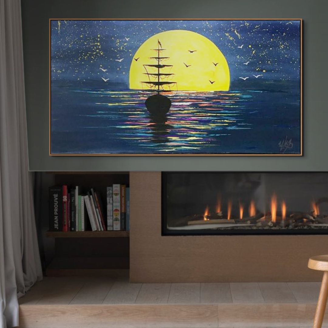 Ay Işığı ve Yelkenli Manzara Tabloları, Gece deniz Tablolar, Deniz ve Göl 57