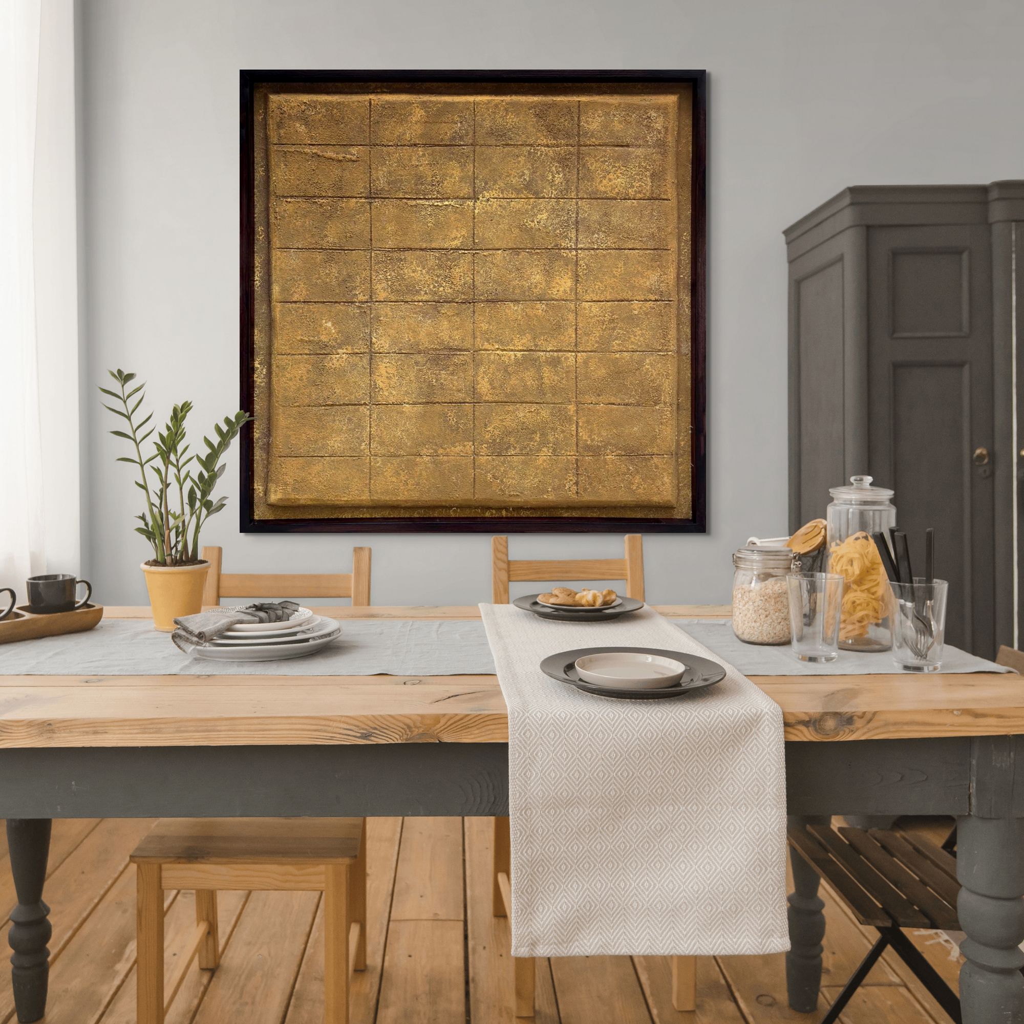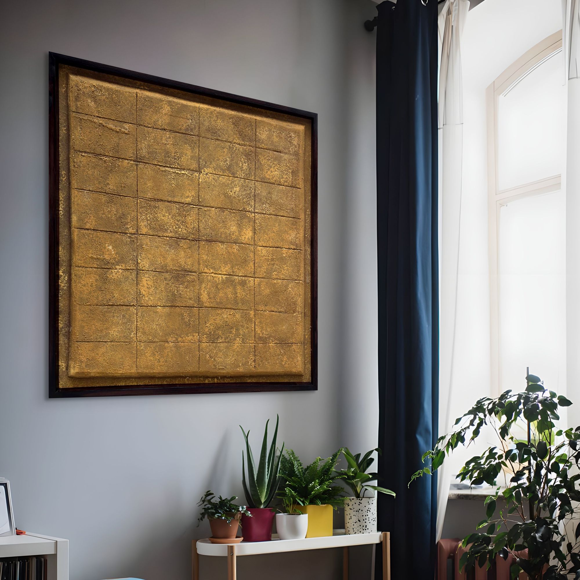 Doğal Dokuya Sahip El Yapımı Dekoratif Duvar Tablosu – Çağdaş Ev Dekorasyonu İçin Büyük Boy Sanat Eseri