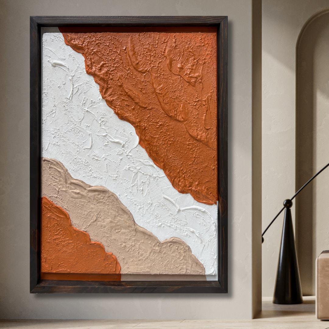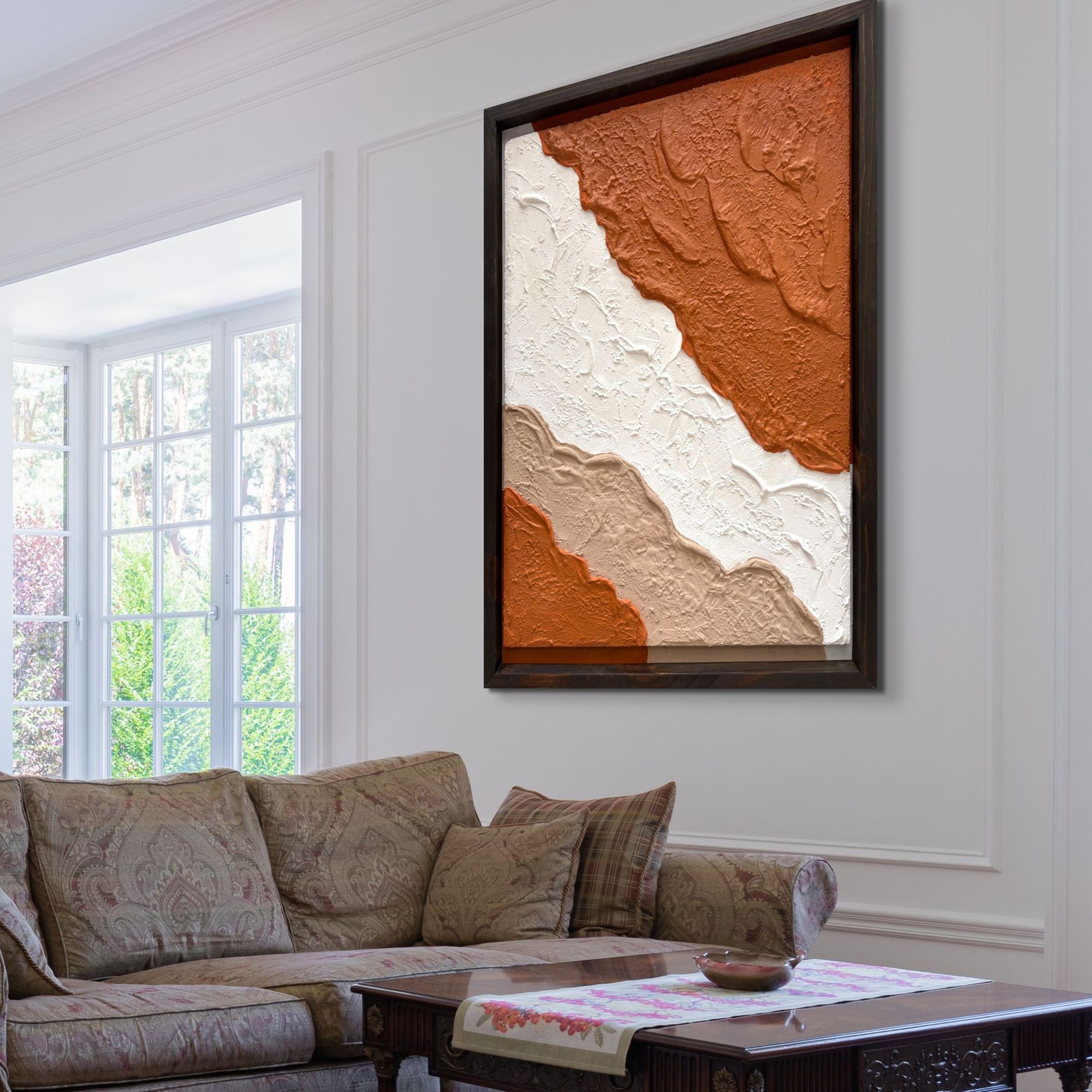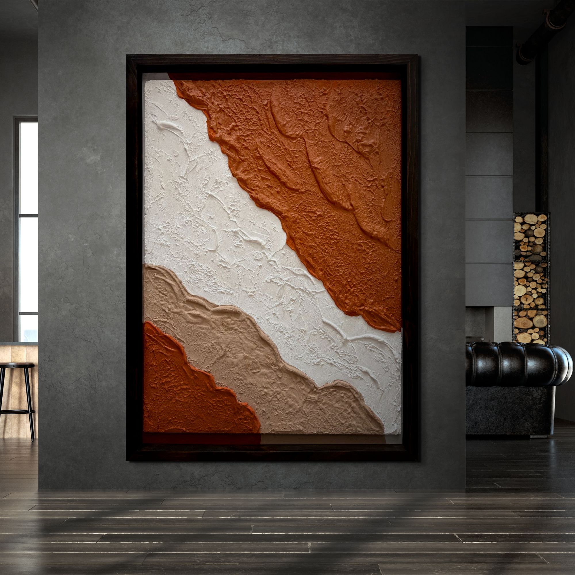 Doğal Tonlarda El Yapımı 3D Dokulu Duvar Tablosu – Modern Minimalist Tasarım – Salon ve Ev Dekorasyonuna Uygun Büyük Dekoratif Sanat Eseri