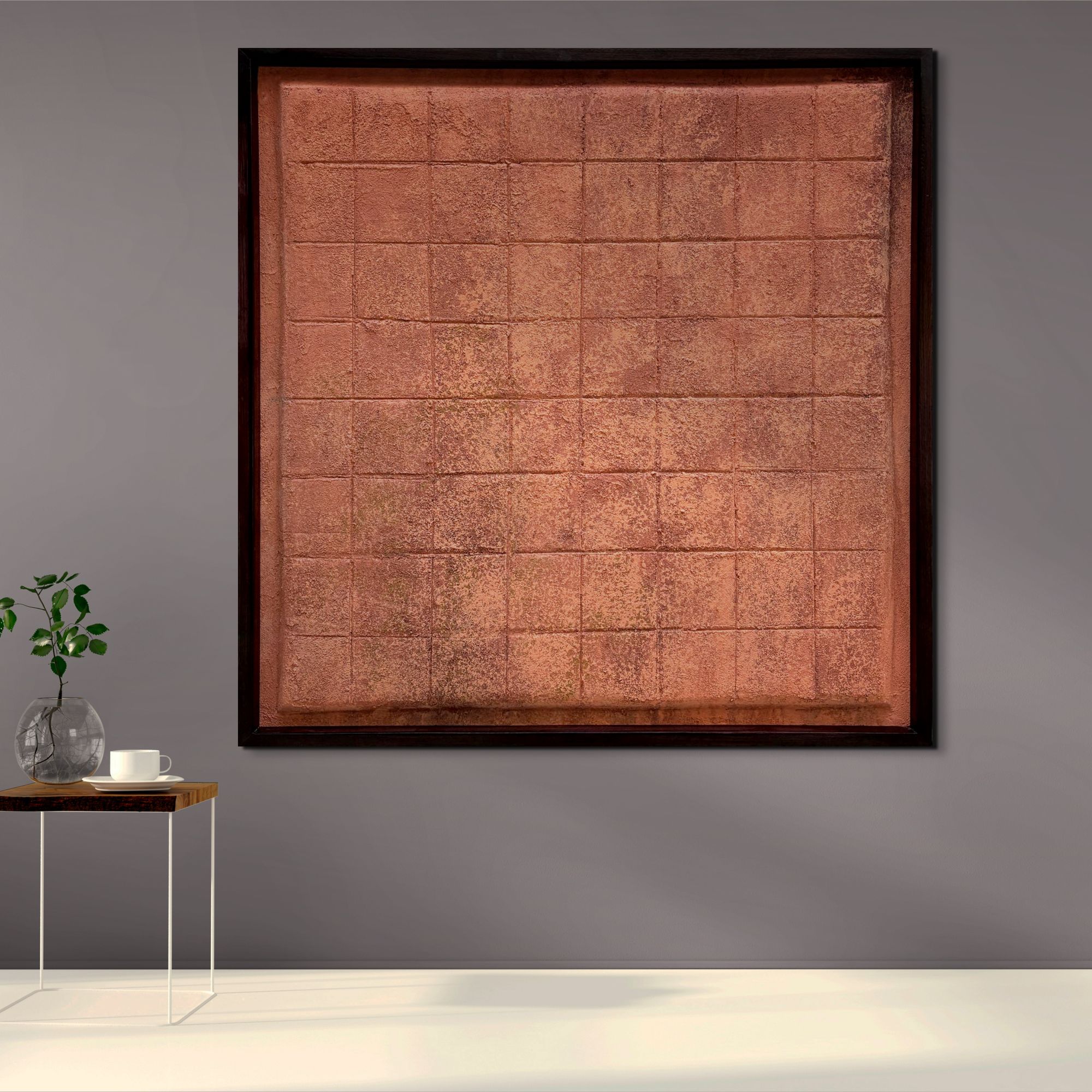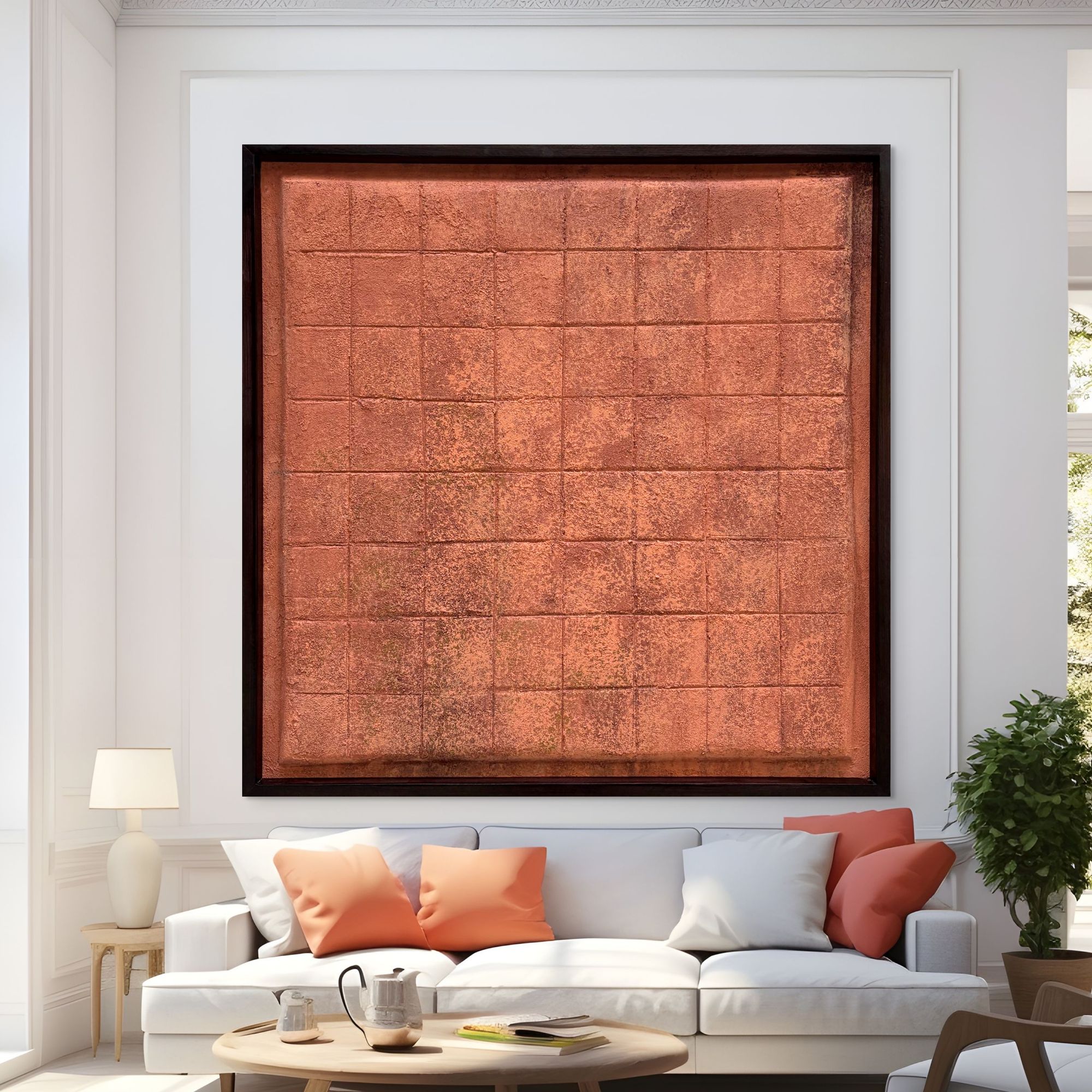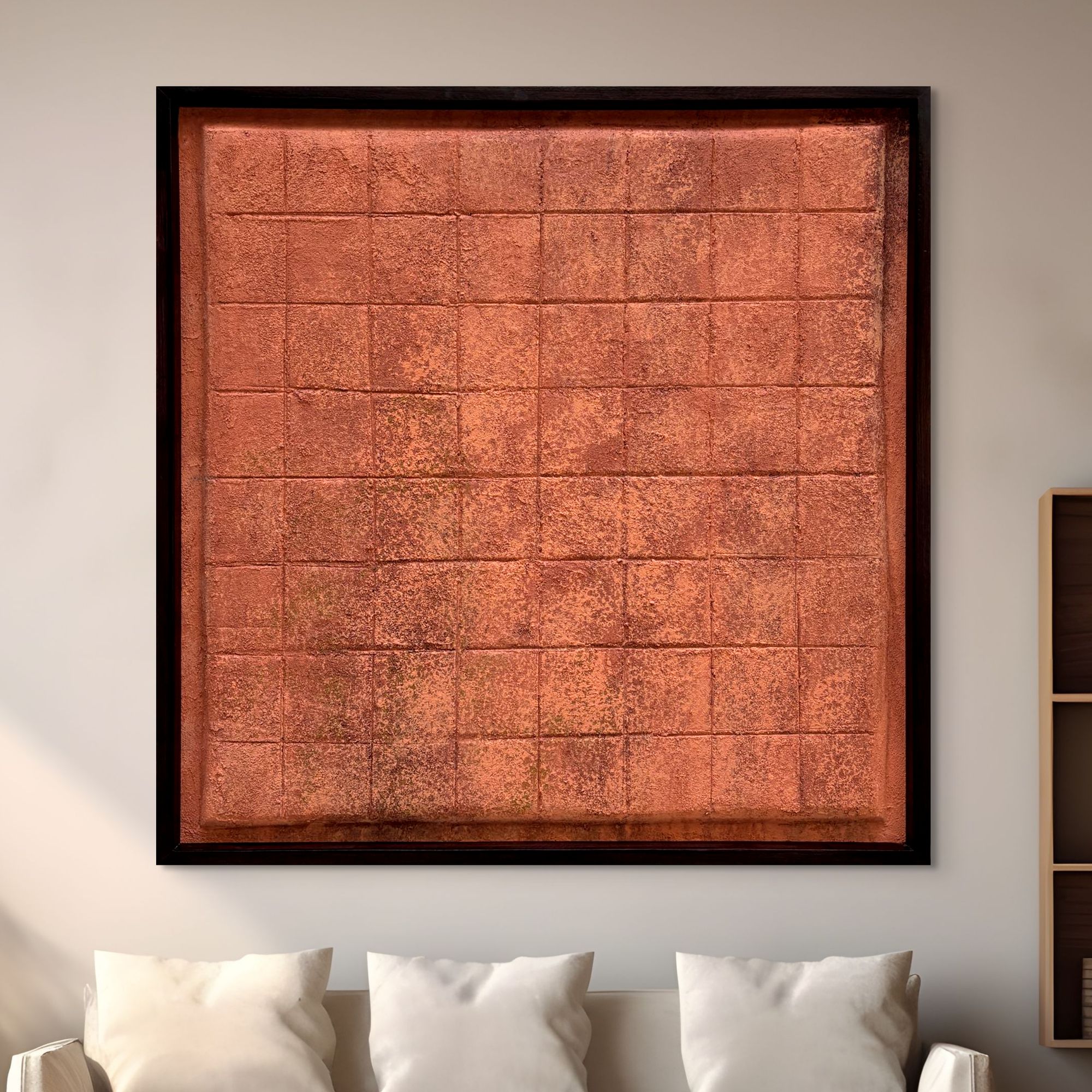 El Yapımı Terracota Dokulu Grid Desenli Modern Duvar Tablosu – Doğal Tonlarda 3D Yüzey Efektli Dekoratif Sanat Eseri