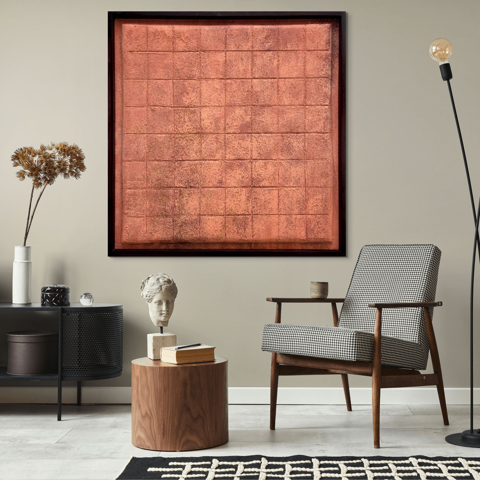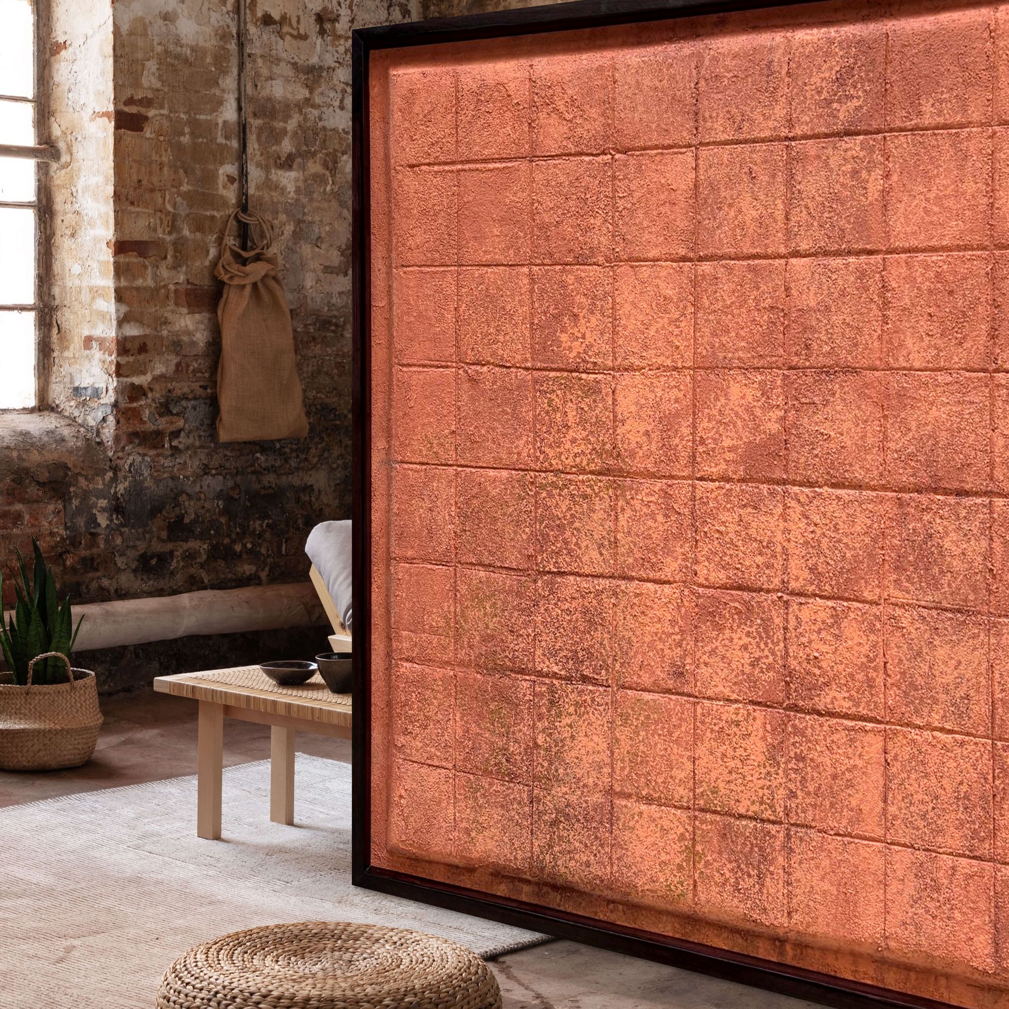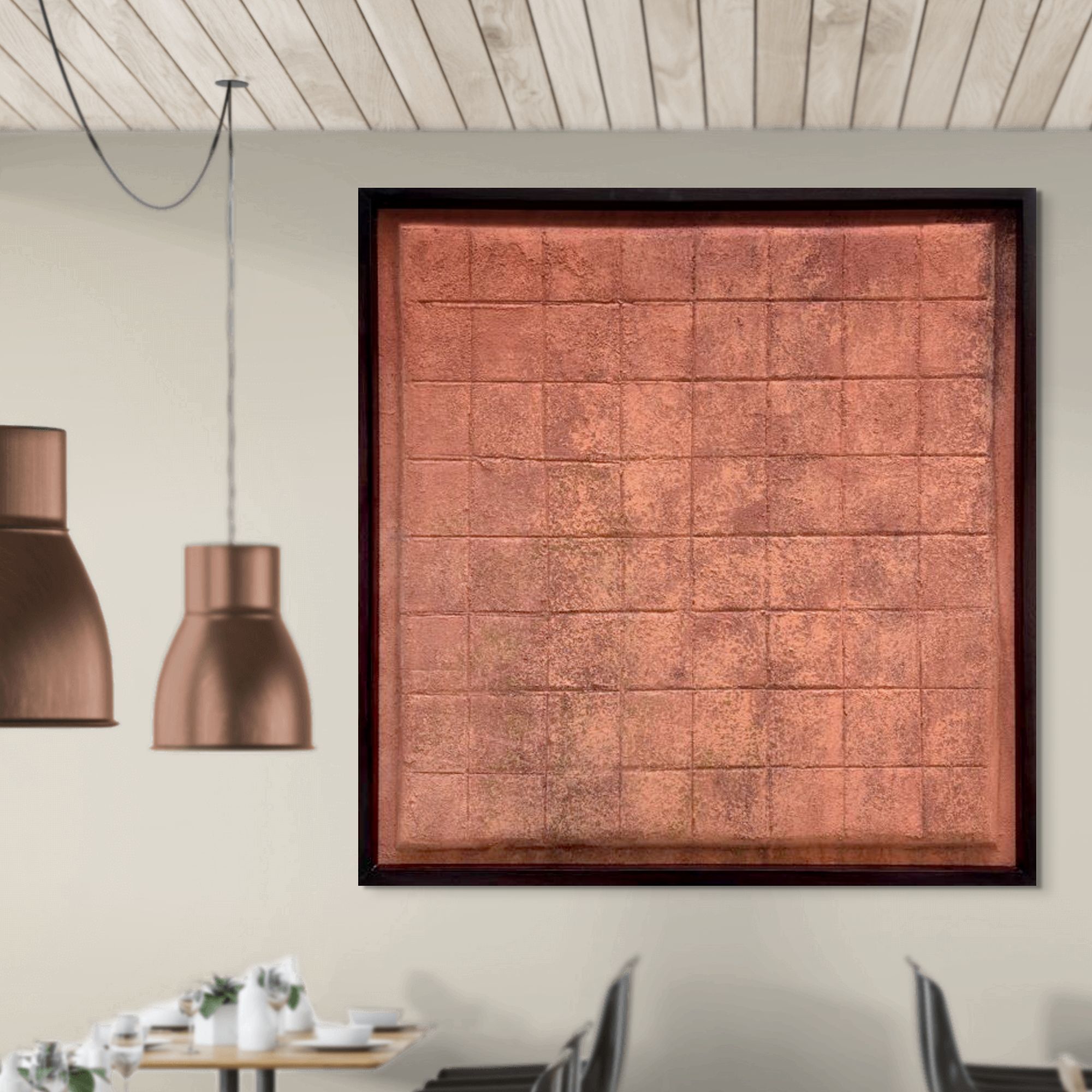 El Yapımı Terracota Dokulu Grid Desenli Modern Duvar Tablosu – Doğal Tonlarda 3D Yüzey Efektli Dekoratif Sanat Eseri