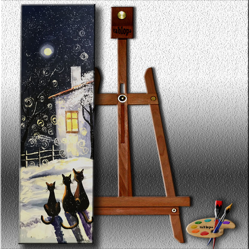 SOKAK KEDİLERİ TABLOLARI, KEDİLERİN HAYALLERİ TABLOSU, KIŞ MANZARALI KEDİ RESİMLERİ TABLO 046